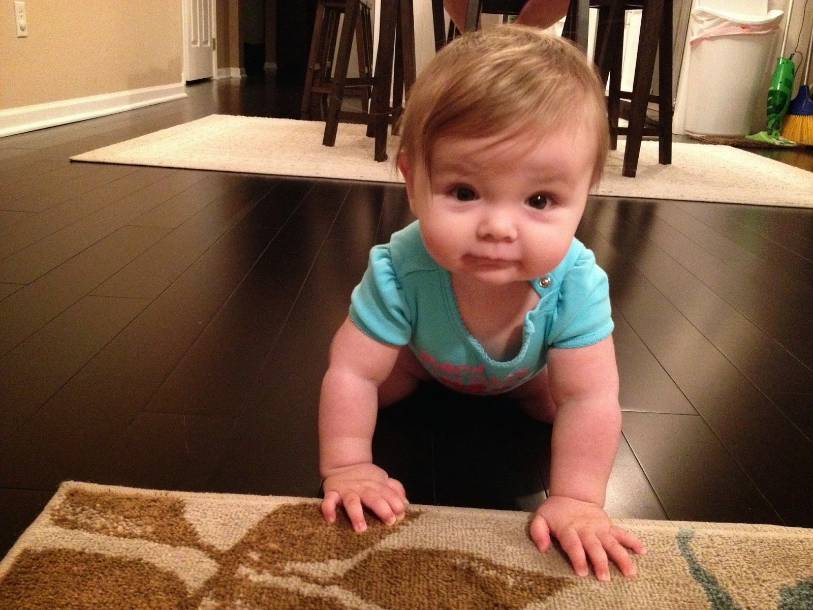 | There have been a few changes around here this week. Eleanor can go from the laying position to sitting up! The pack and play mattress has been lowered! |